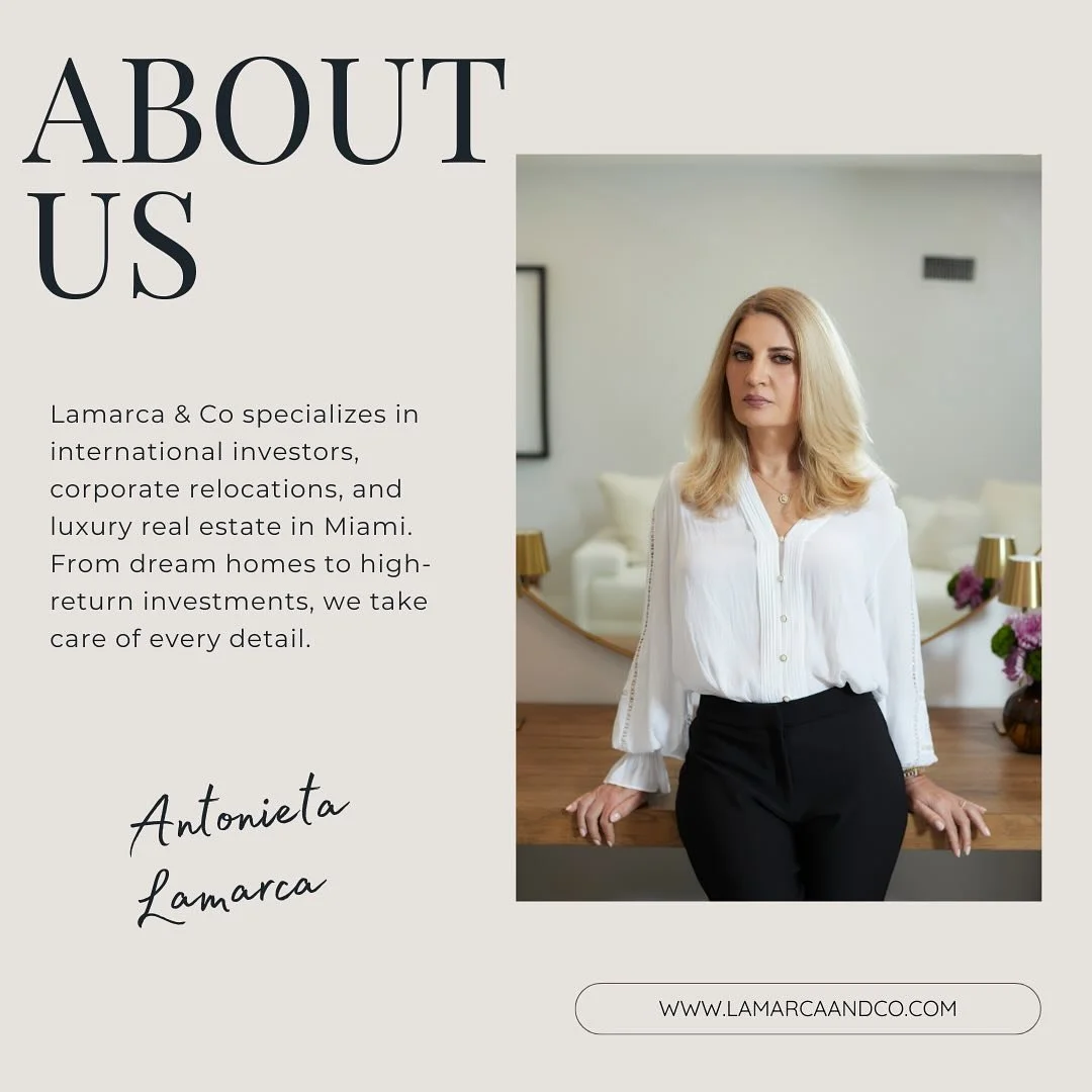 The Lamarca & Co team, led by Antonieta Lamarca, provides its clients, homeowners, potential buyers, landlords, investors and developers, a personalized service and security in their transactions. The real estate advice we provide is empathetic, transparent and based on real data by incorporating our own experience in the real estate market in Miami.
