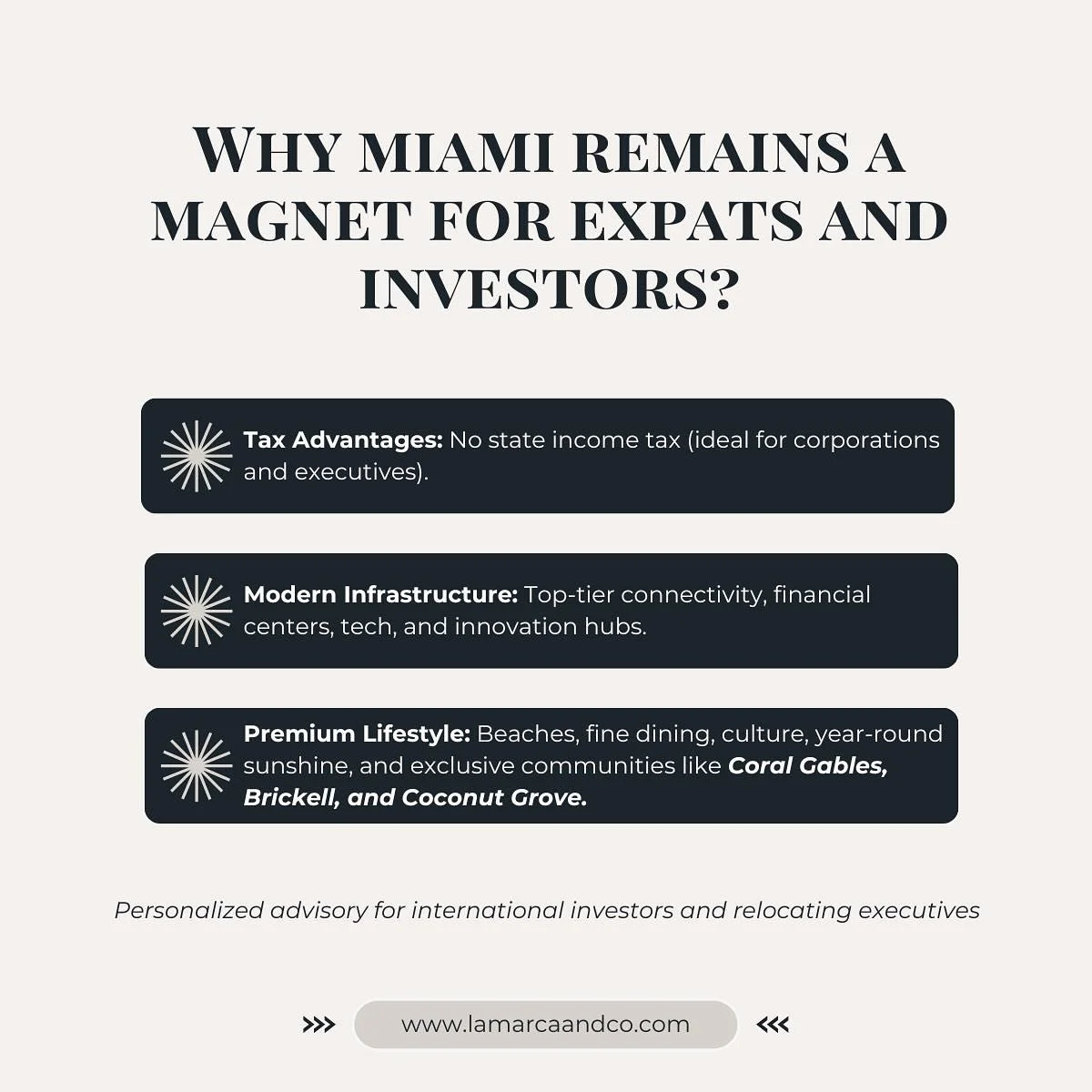Investing in the US is one of the best decisions that you will undoubtedly be able to make to save your assets and as an investor and realtor I can assure you that the transaction requires a process and detail that goes beyond a purchase - sale. At Lamarca & Co we have designed the complete ecosystem so that you feel safe, advised and accompanied throughout the process.